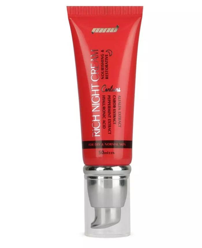 شماره پروانه بهداشتی ساخت: 56/20351 ؛ کرم شب مغذی و تقویت کننده پوست (Rich Night Cream) دارای عصارههای طبیعی خاصی است که سرشار از ترکیبات مفید همچون پلیساکاریدها، فلاوانونها هستند که موجب احیا و جوانسازی پوست خشک و نرمال میشوند.