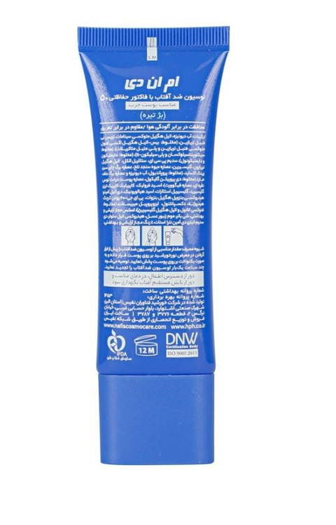شماره پروانه بهداشتی ساخت: ۵۶/۳۶۳۷۴لوسیون ضد آفتاب با SPF 50(بژ تیره) تولید شده در برند ام ان دی با به کار گیری فرمولاسیون منحصر به فرد برای افرادی که دارای پوست چرب هستند کمک کرده تا در حالی که از پوست خود در برابر آفتاب محافظت میکنند، از جوش زدن چرب شدن بیش از حد پوست خود جلوگیری کنند و از پوست خود در برابر آلودگی هوا نیز مراقبت کنند.