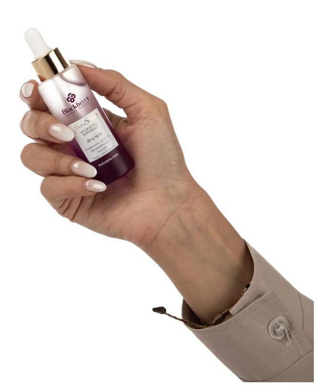 پوست خشک به دلیل کامل نبودن یا آسیب دیدن لایه شاخی با سرعت بسیار بیشتری نسبت به پوست معمولی، رطوبت خود را از طریق تبخیر از دست داده و لطافت پوست کاهش مییابد. سرم آبرسان و ترمیمکننده Blackberry برای تامین این دو نیاز اساسی پوست خشک تولید شده و یکی از ترکیبات آبرسان بسیار مهم یعنی سدیم هیالورونات را در خود دارد. باتوجه به اینکه وزن مولکولی سدیم هیالورونات تعیینکننده میزان نفوذ ماده به پوست است، از وزنهای مولکولی مختلف سدیم هیالورونات در این سرم استفاده شده تا لایههای سطحی تا عمقی پوست به خوبی آبرسانی شوند. در این سرم از عصاره جلبک لامیناریا ساخارینا که انواع ترکیبات پلیساکاریدی جاذب رطوبت را در خود دارد هم کمک گرفته شده که مکمل عملکرد سدیم هیالورنات هستند. علاوه بر آن، جهت حفظ طولانیمدت رطوبت در پوست، در محصول از سدیم هیالورونات کراس پلیمر هم استفاده شده تا آب درون پوست برای چندین روز حفظ شود، درنتیجه با استفاده مداوم از این سرم، میزان آب پوست به میزان قابل ملاحظهای ارتقا مییابد. باتوجه به اینکه پیر شدن و ضعیف بودن سلولهای بنیادی اپیدرم در ترمیم لایه شاخی تاثیر مستقیم دارد، از عصاره کشت سلولی برگ رز آلپ در این سرم کمک گرفته شده که با افزایش طول عمر سلولهای بنیادی اپیدرم کمک میکند تا سلولهای لایه شاخی پوست به خوبی شکل گرفته و درکنار هم نظم داشته باشند تا از ورود مواد التهابزا به پوست جلوگیری شده و آب از پوست تبخیر نشود. درست است که دکسپانتنول هم بهعنوان یک ترکیب کاهنده التهاب و ترمیمکننده در این سرم حضور دارد تا به سایر ترکیبات کمک کند اما از پالمیتویل تتراپپتید-10 نیز بهره گرفته شده که با تحریک تولید سرامید و اسید هیالورونیک توسط سلولهای پوست موجب بازیابی لایه آبگریز فوقانی پوست شده و به نرم شدن و لطیف شدن پوست کمک میکند و مشکلات شایع پوست خشک مانند قرمزی شدن، خارش و... را کاهش میدهد.