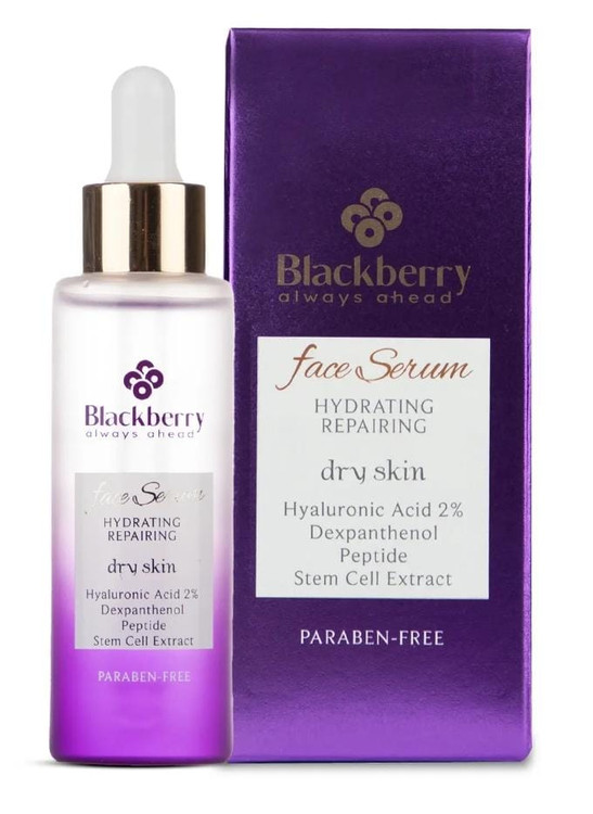 سرم صورت آبرسان و ترمیم کننده حاوی2%هیالورونیک اسید و دکسپانتنول مناسب پوست خشک بلک بری40میلیلیتر